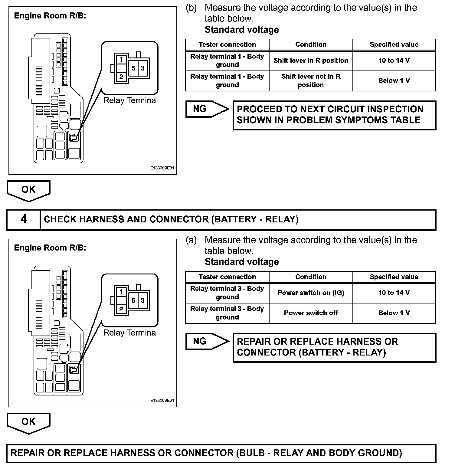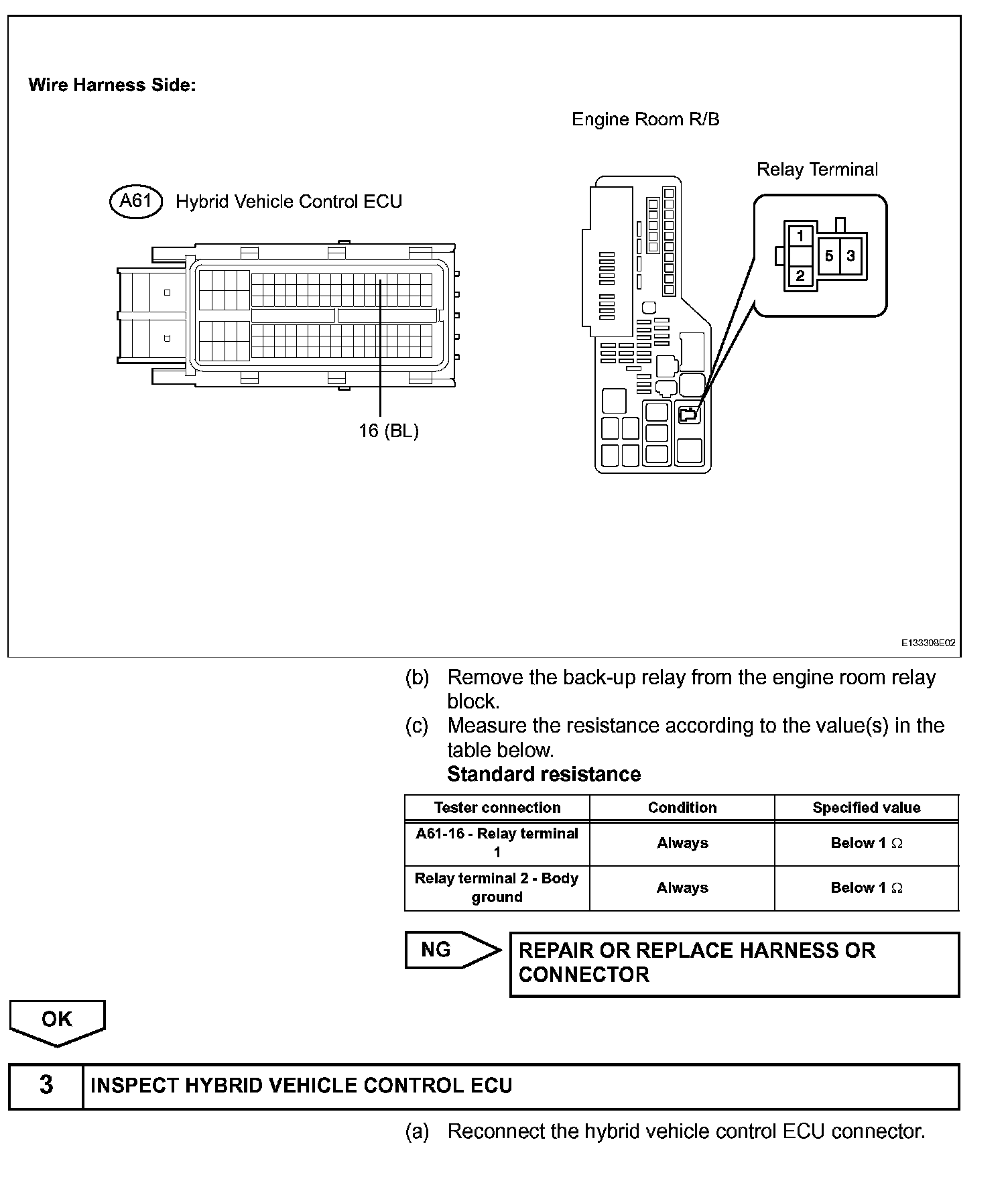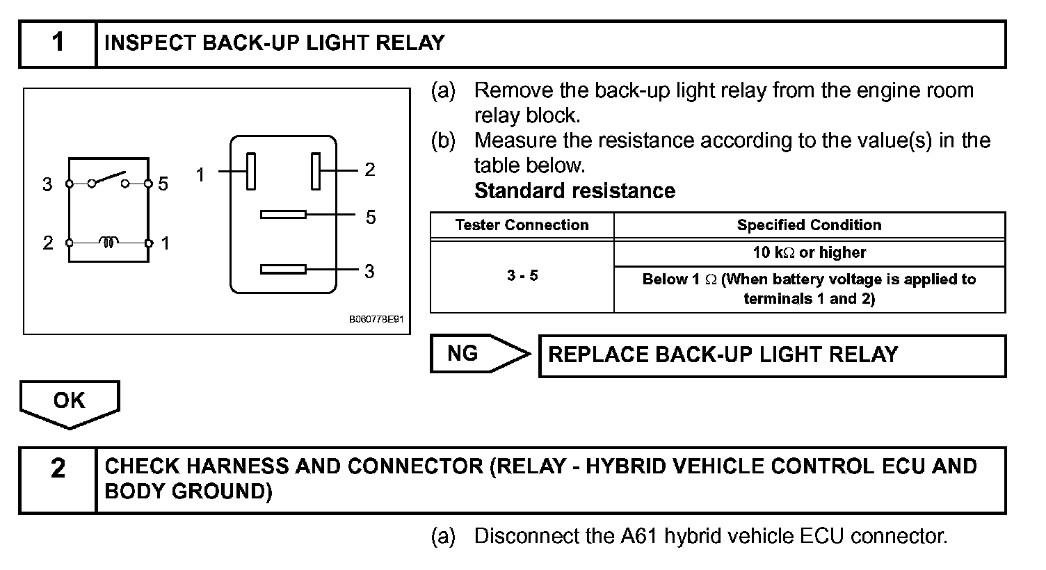The HV control ECU receives shift position R signal and controls the back-up light relay.