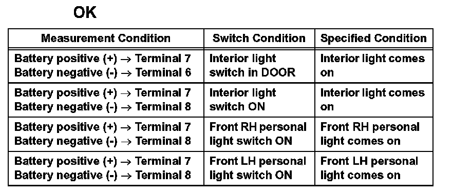 b. Check that the interior light and personal lights come on.