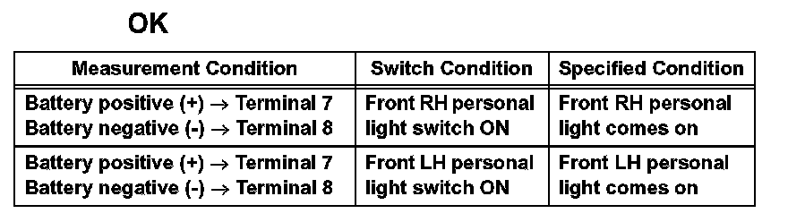 If the result is not as specified, replace the roof console box assembly.