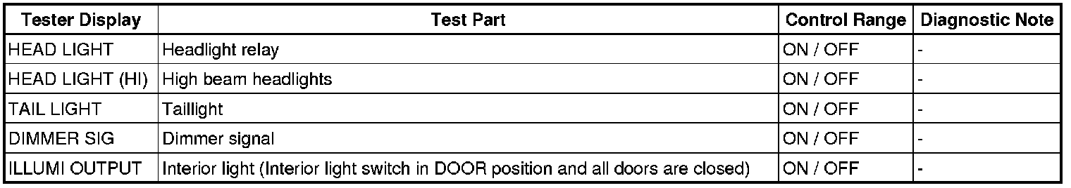 LIGHTING: LIGHTING SYSTEM: DATA LIST / ACTIVE TEST