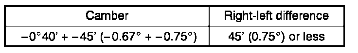 Standard camber inclination: