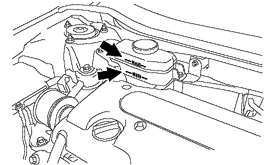 (a) Check the fluid level. If the brake fluid level is between the MAX and MIN lines, the level is normal. If brake fluid level is lower than the MIN line, check for leakage and inspect the disc brake pad. If necessary, refill the reservoir with brake fluid after repair or replacement. When adding brake fluid, refer to step 10 "CHECK BRAKE FLUID LEVEL".