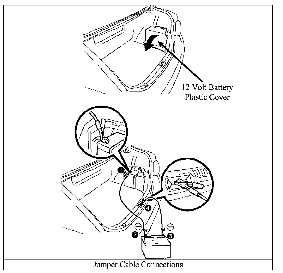 - Open the trunk, and remove the 12-Volt auxiliary battery cover on the passenger side.