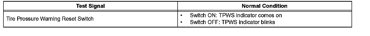 - Operation of the tire pressure warning reset switch can be checked in TEST MODE.