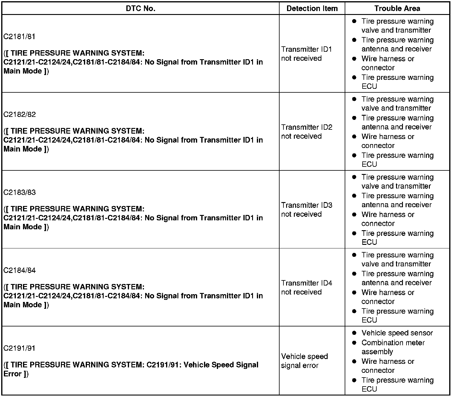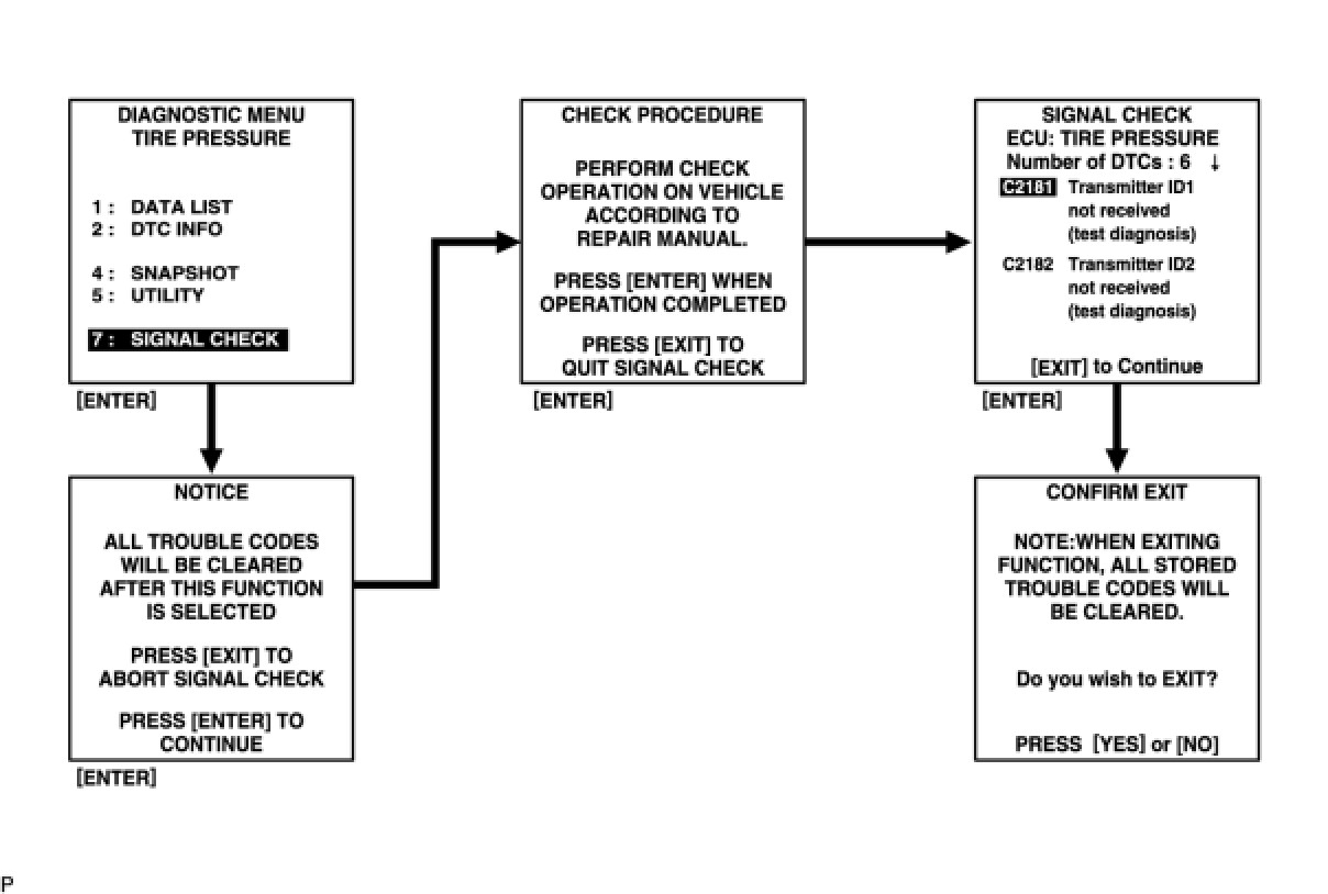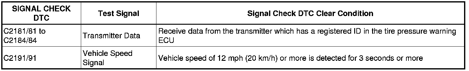 - When entering signal check mode, the tire pressure warning ECU sets all the signal check DTCs first.