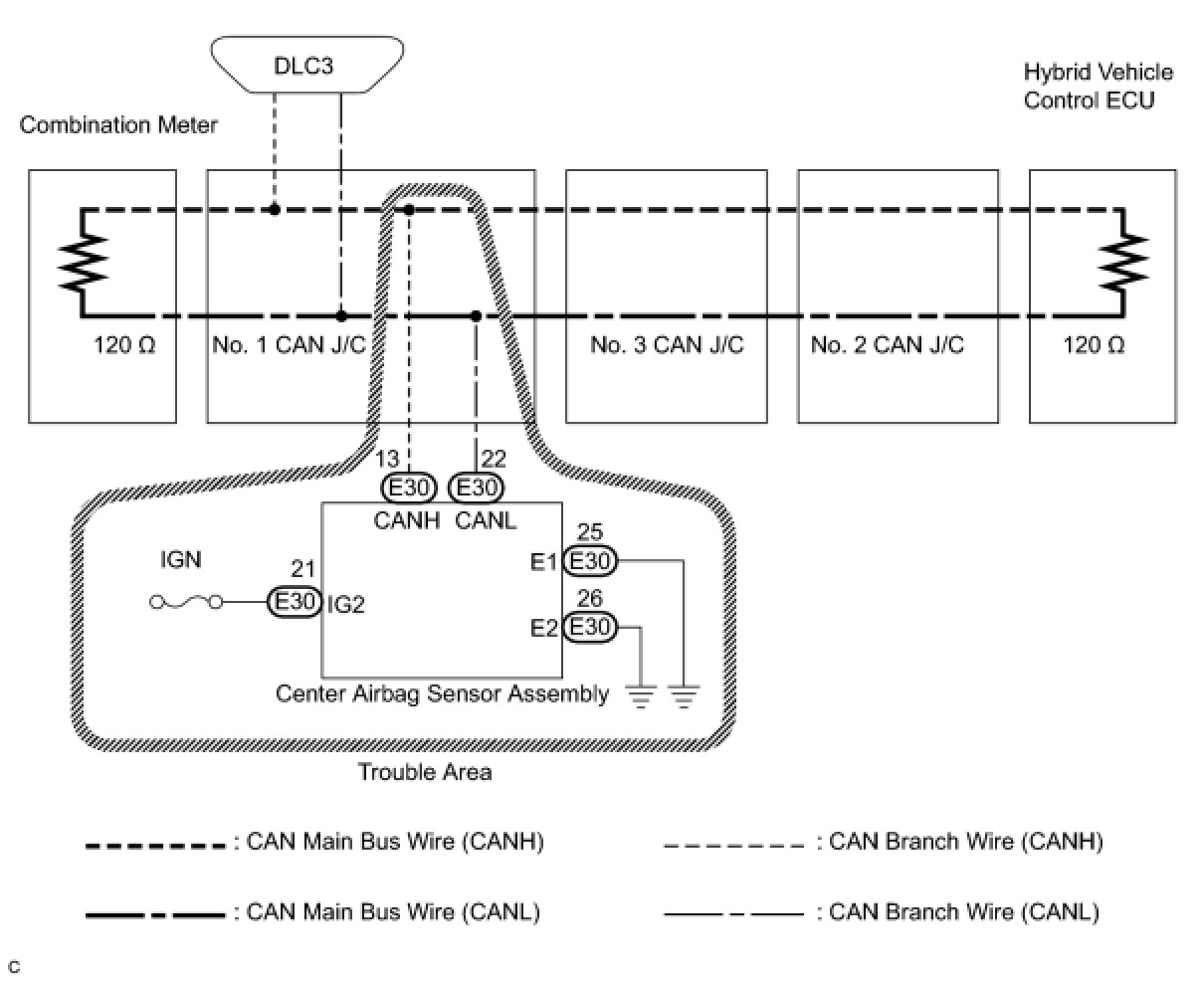 1. CHECK FOR OPEN IN CAN BUS WIRE (CENTER AIRBAG SENSOR BRANCH WIRE)