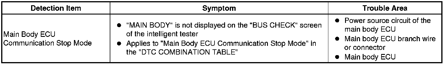 CAN COMMUNICATION: CAN COMMUNICATION SYSTEM: Main Body ECU Communication Stop Mode