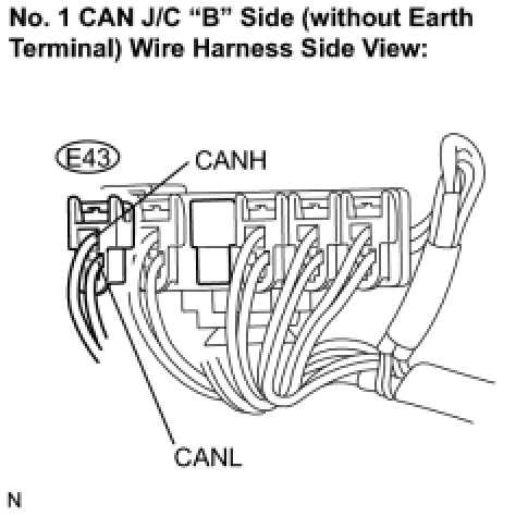 (a) Reconnect CAN main bus wire connector E43 to the No. 1 CAN J/C "B" side (without earth terminal).