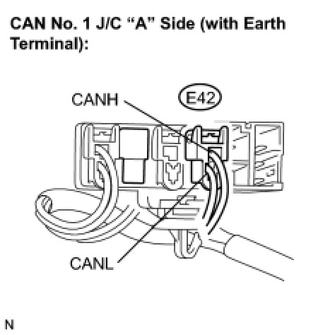 (a) Reconnect CAN main bus wire connector E42 to the No. 1 CAN J/C "A" side (with earth terminal).