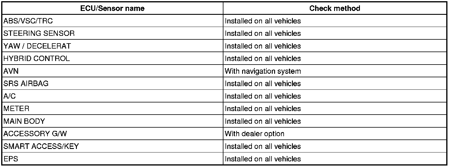 (a) Systems (ECUs, sensors) that use CAN communication vary depending on the vehicle's optional equipment. Check which systems (ECUs, sensors) are installed on the vehicle.
