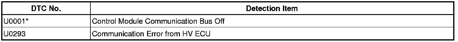 - *: The HV control ECU is malfunctioning if only U0001 is output. Replace the HV control ECU.