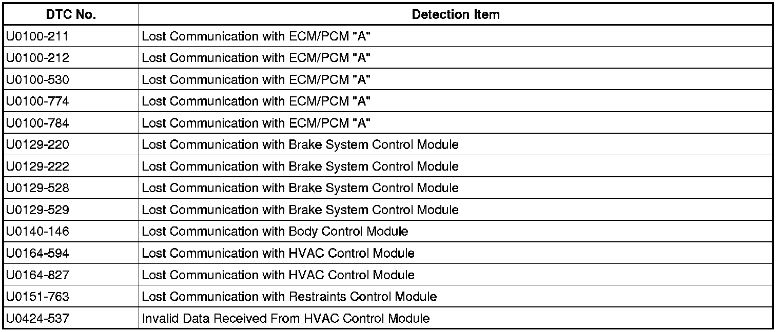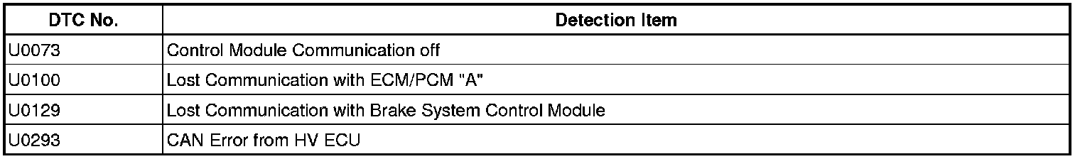 - U0110-159, U0110-160, U0110-656, and U0110-657 are not CAN communication system DTCs. Therefore, refer to the troubleshooting procedures for the hybrid control system.