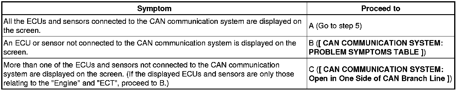 HINT: Previous CAN communication system DTCs may be the cause if CAN communication system DTCs are output and all ECUs and sensors connected to the CAN communication system are displayed on the intelligent tester "BUS CHECK" screen.