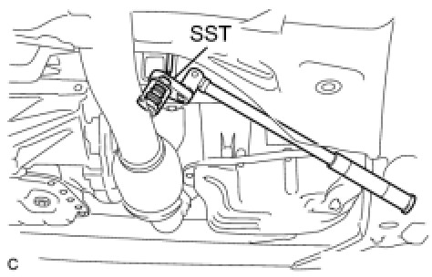 (b) Using SST, remove the heated oxygen sensor from the exhaust pipe assembly front No. 3.