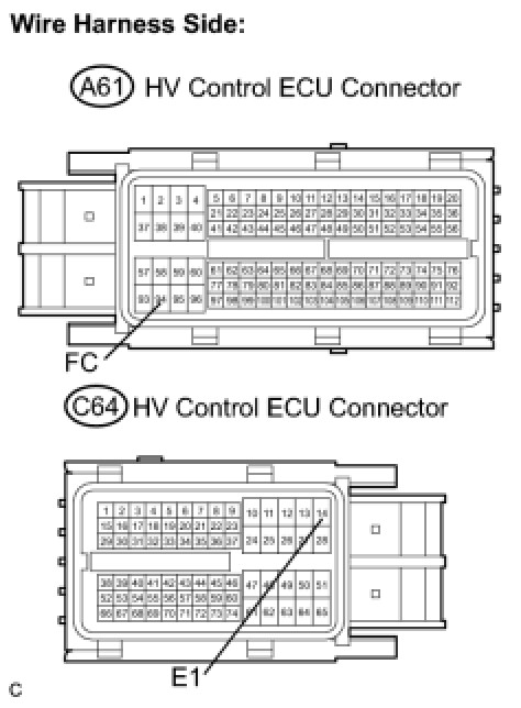 (a) Disconnect the A61 and C64 hybrid vehicle control ECU connectors.