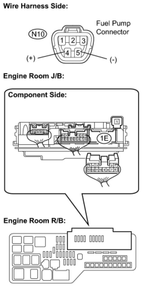 (a) Check the harness and the connectors between the engine room J/B and the fuel pump.