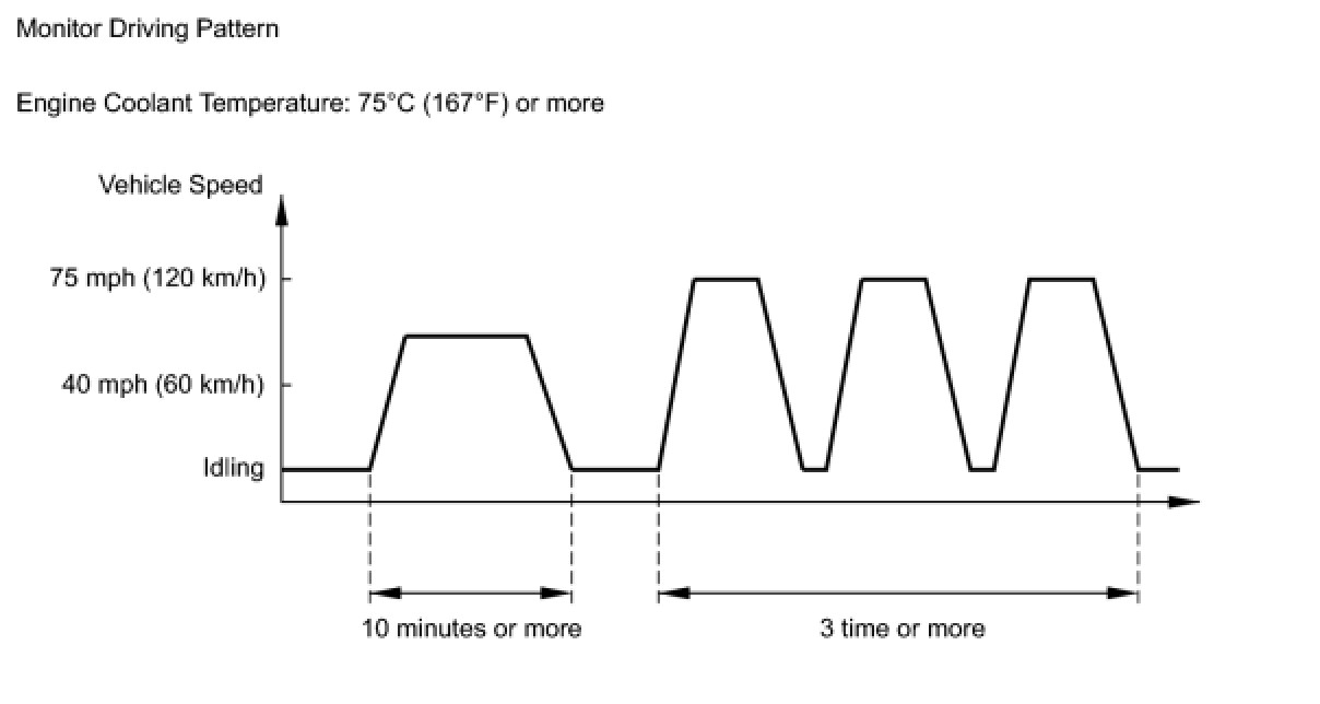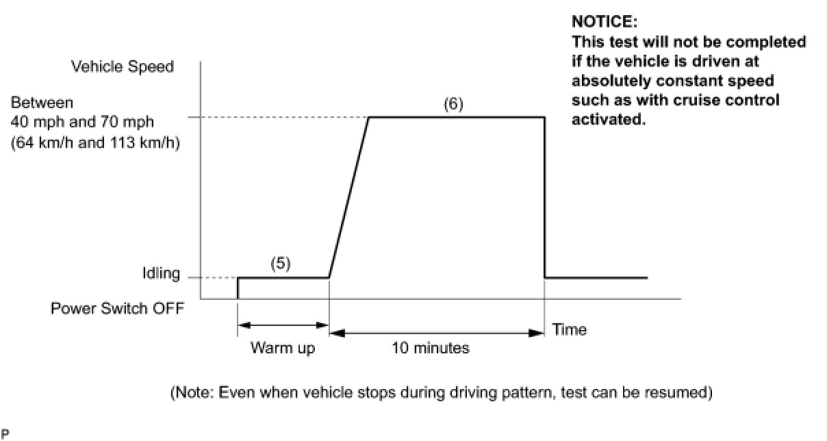 (6) Drive the vehicle at between 40 mph (60 km/h) and 75 mph (120 km/h) for 10 minutes or more.