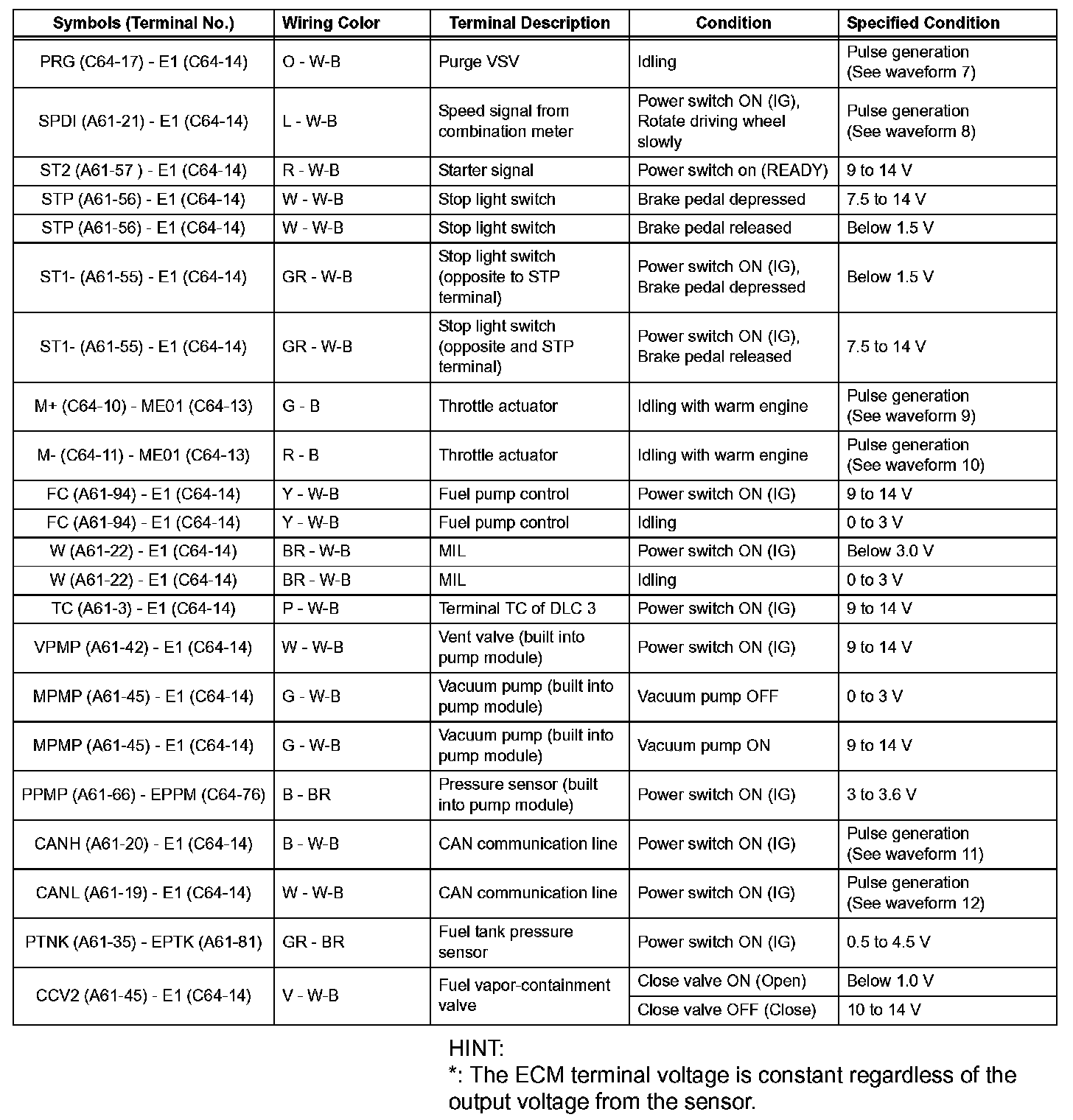 Terminals Of ECM/Pinouts (Part 3):