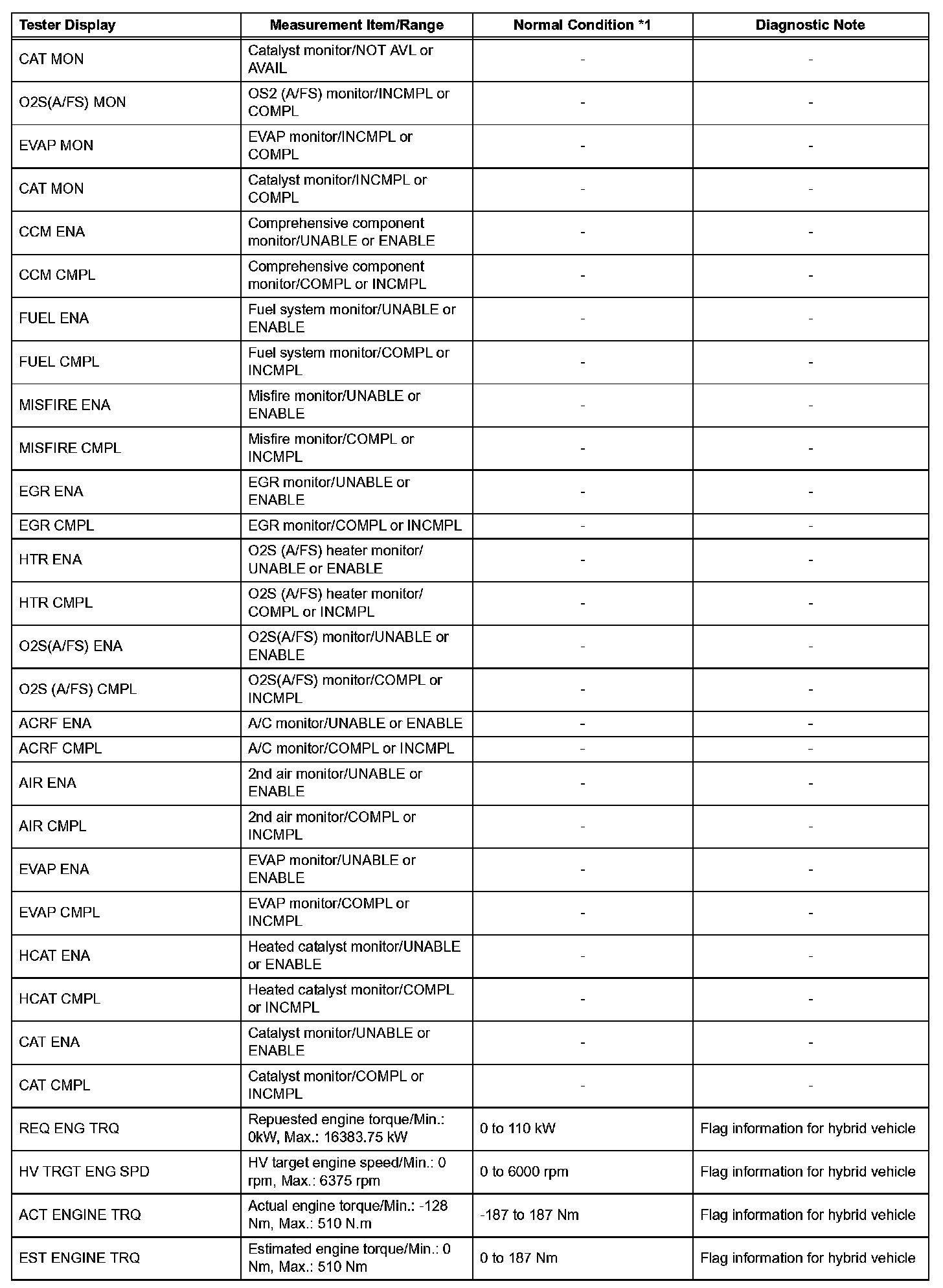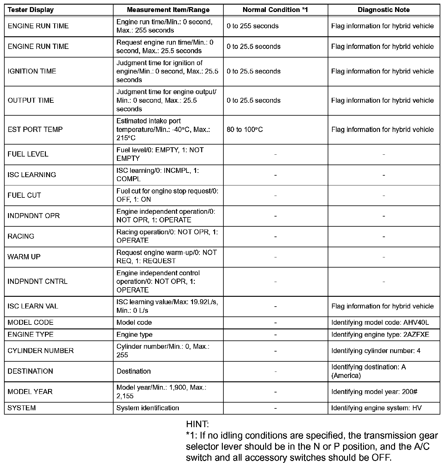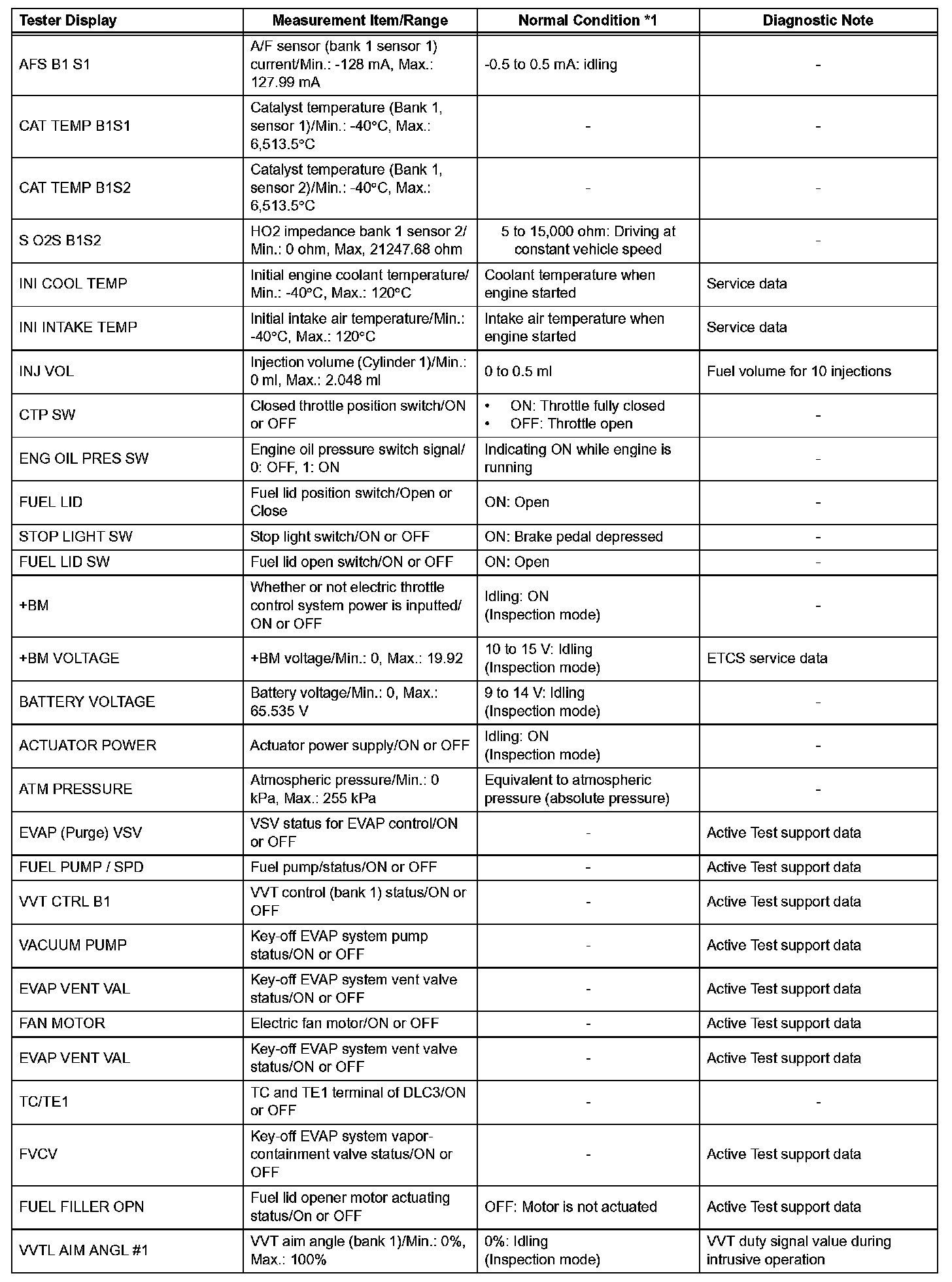 DATA LISTHINT: By reading the DATA LIST displayed on an intelligent tester, you can check values, including those of the switches, sensors, and actuators, without removing any parts. Reading the DATA LIST as the first step in troubleshooting is one method of shortening diagnostic time.