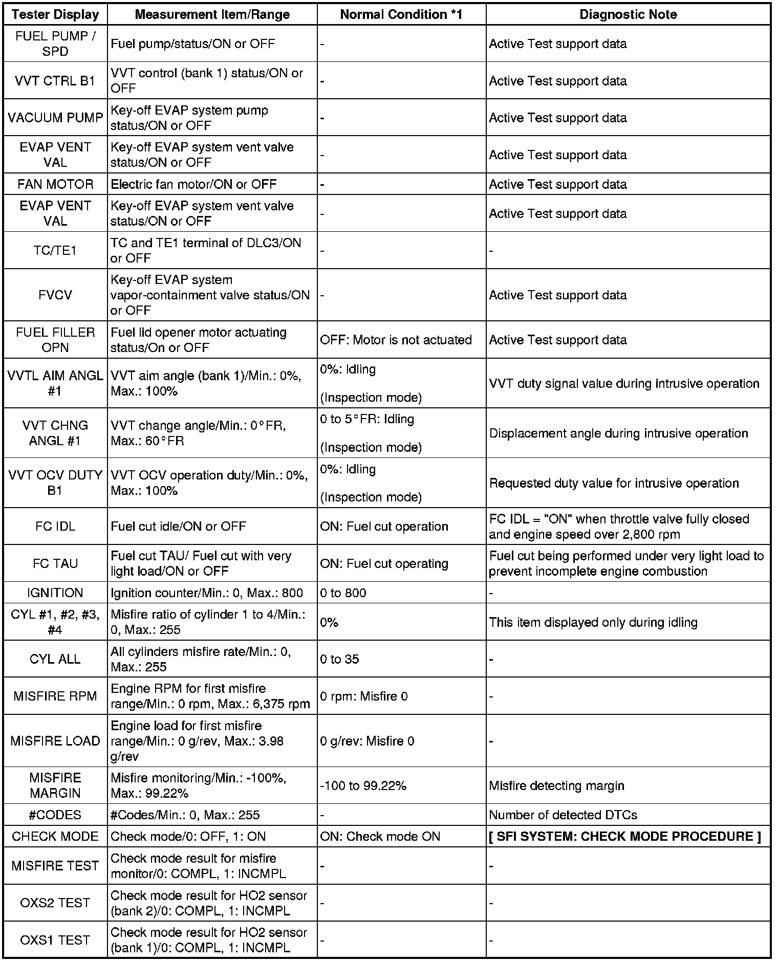 2AZ-FXE ENGINE CONTROL SYSTEM: SFI SYSTEM: DATA LIST / ACTIVE TEST