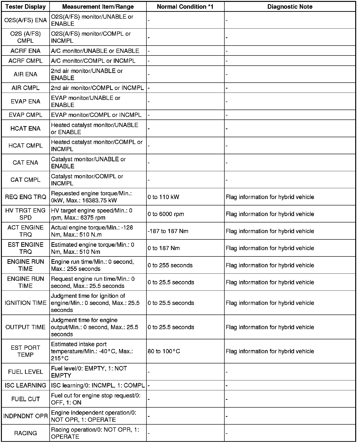 HINT: *1: If no idling conditions are specified, the transmission gear selector lever should be in the N or P position, and the A/C switch and all accessory switches should be OFF.