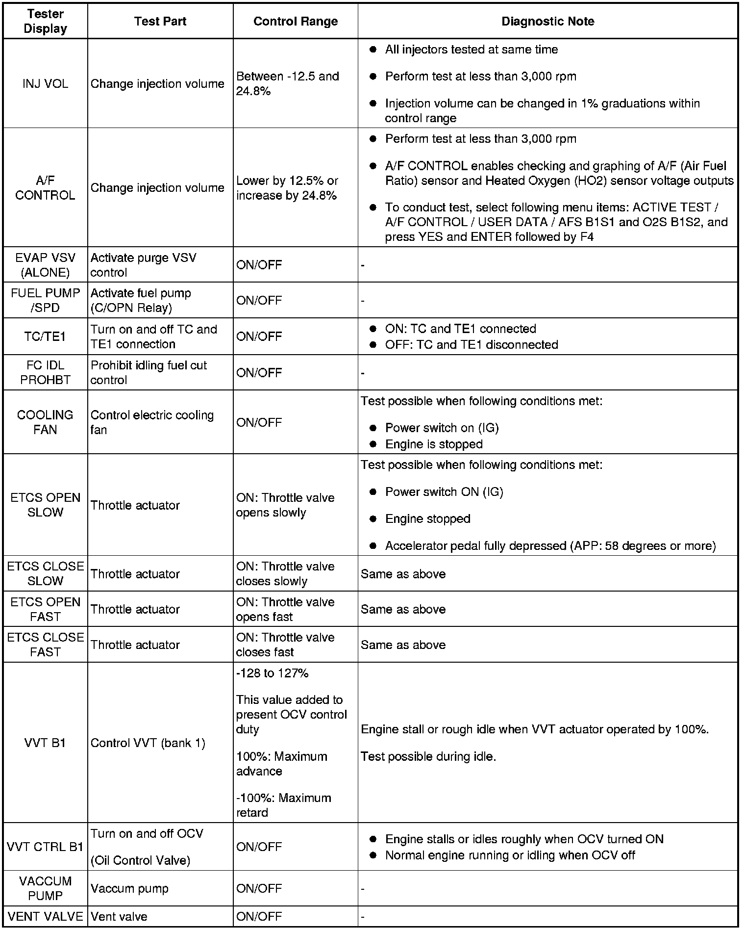HINT: Performing an ACTIVE TEST enables components including the relays, VSV (Vacuum Switching Valve) and actuators, to be operated without removing any parts. The ACTIVE TEST can be performed with an intelligent tester. Performing an ACTIVE TEST as the first step in troubleshooting is one method of shortening diagnostic time.