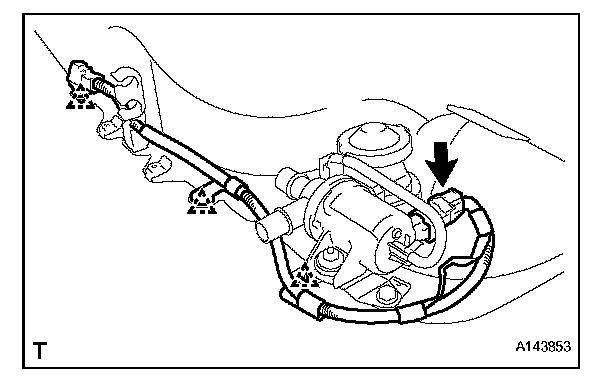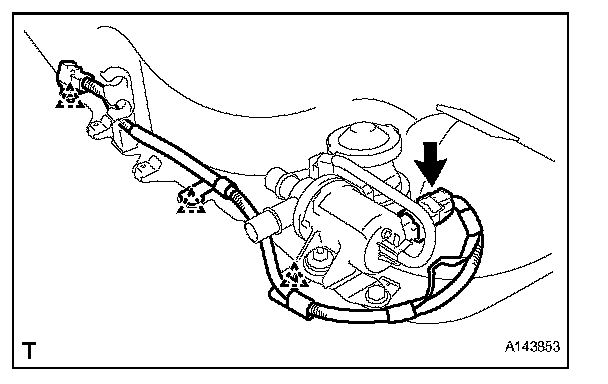 b. Disconnect the fuel vapor containment valve connector and 3 clips, and remove the wire harness.