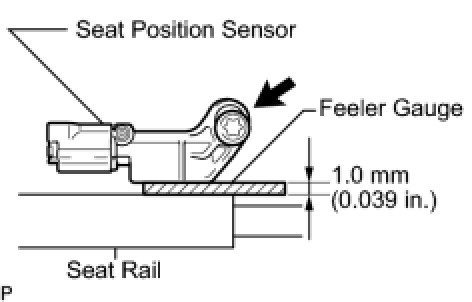 HINT: Be sure that a clearance between the seat position sensor and the seat rail is within 0.6 mm (0.024 in.) to 2.0 mm (0.079 in.).