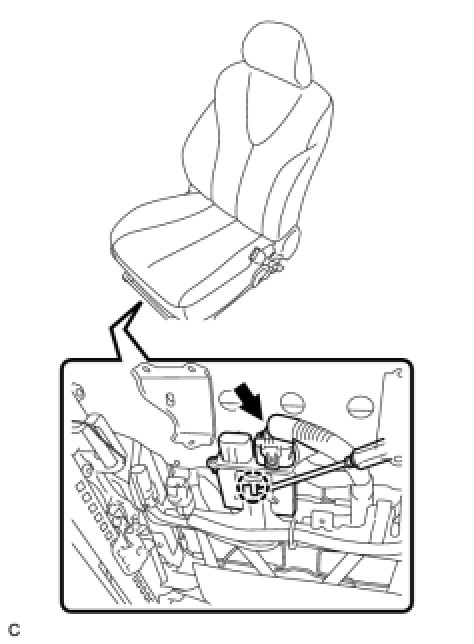 (b) Using a screwdriver, disengage the claw and remove the occupant classification ECU.