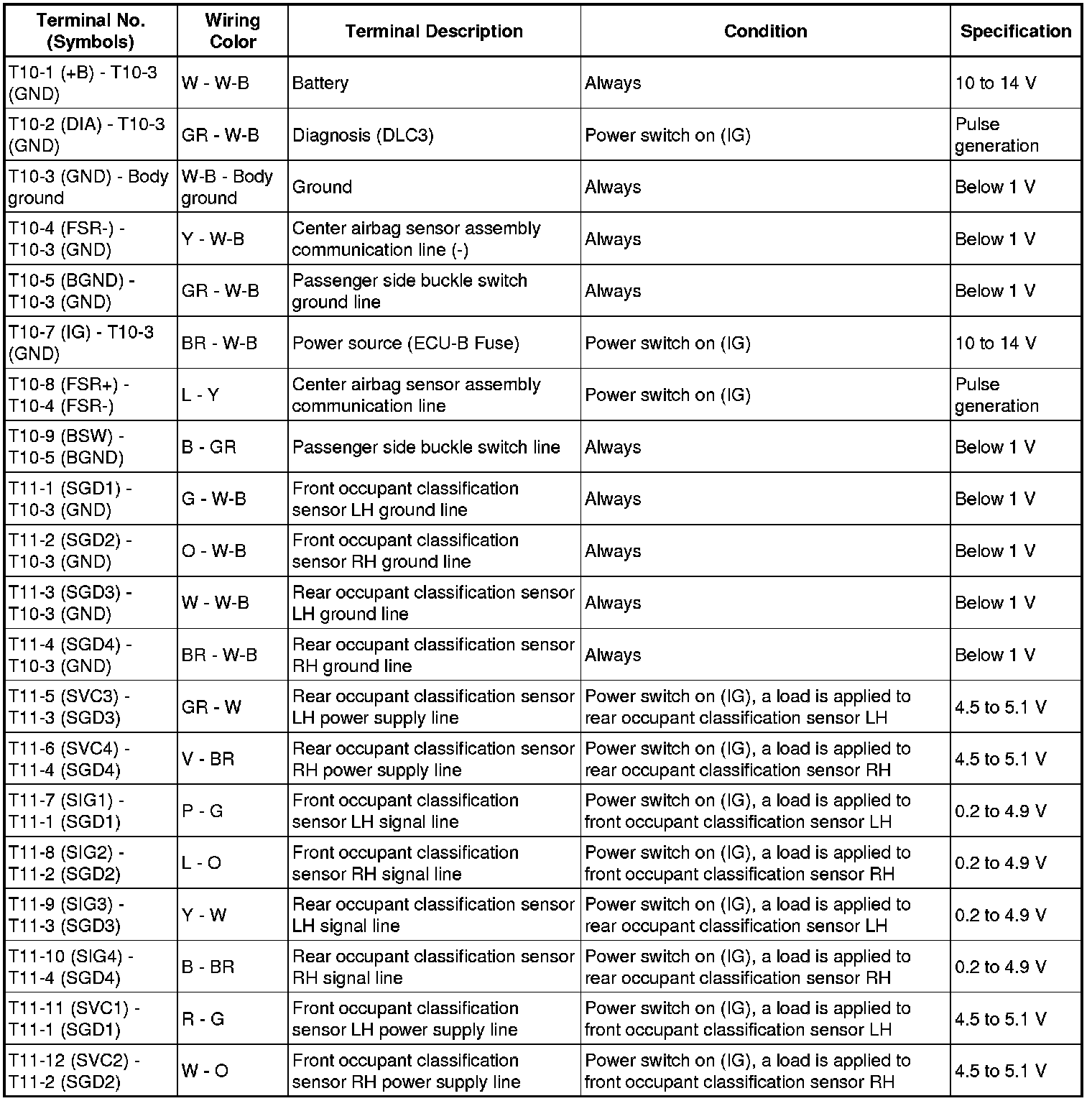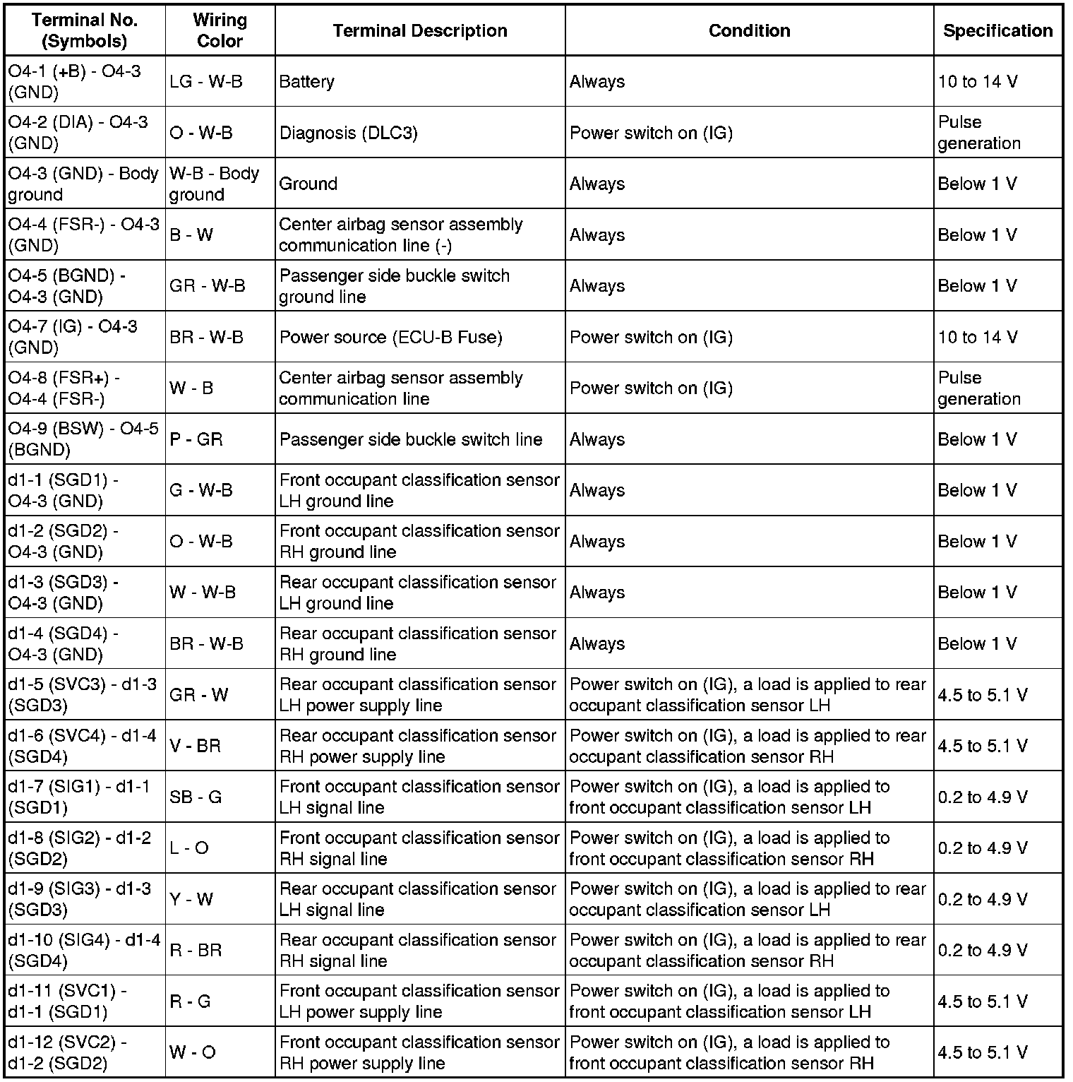 SUPPLEMENTAL RESTRAINT SYSTEM: OCCUPANT CLASSIFICATION SYSTEM: TERMINALS OF ECU