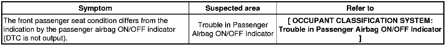 SUPPLEMENTAL RESTRAINT SYSTEM: OCCUPANT CLASSIFICATION SYSTEM: PROBLEM SYMPTOMS TABLE