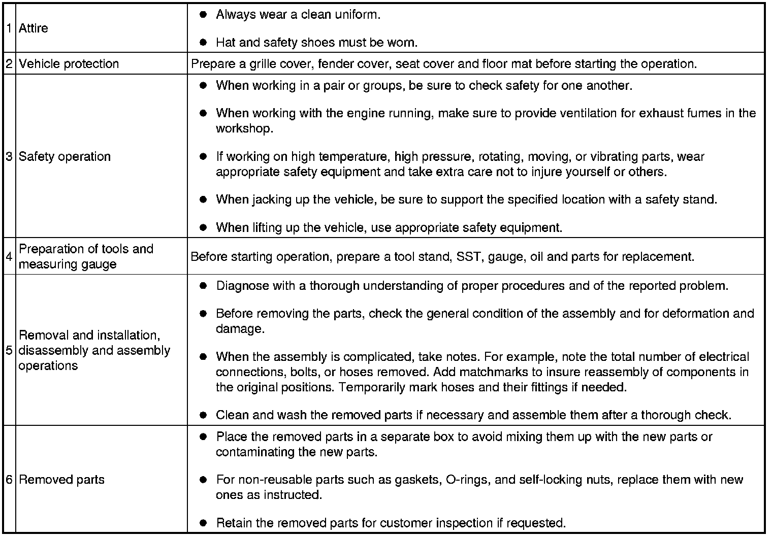 (f) When servicing the vehicle, do not carry metal objects like mechanical pencils or scales that can be dropped accidentally and cause a short circuit.