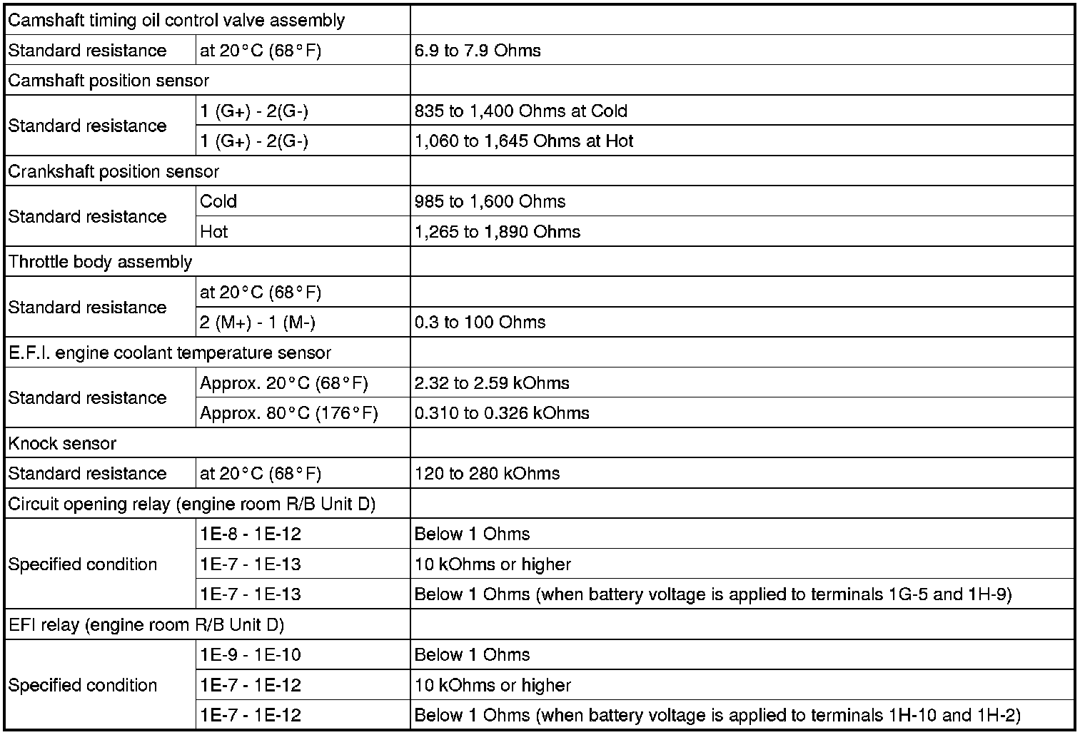 SERVICE SPECIFICATIONS: 2AZ-FXE ENGINE CONTROL SYSTEM: SERVICE DATA