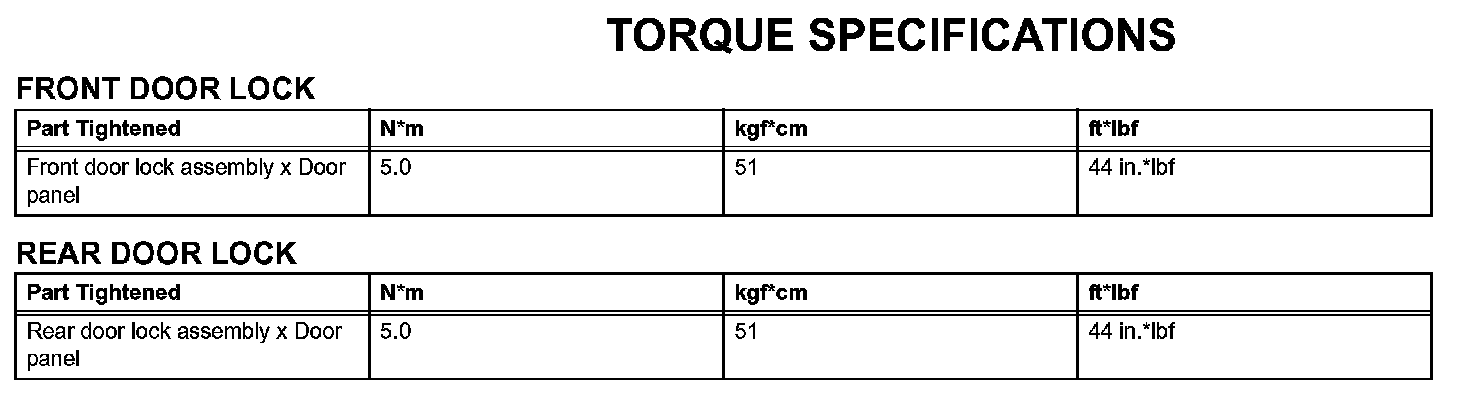 Door Lock - Torque Specifications:
