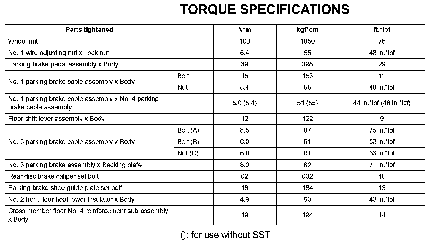 Parking Brake - Torque Specifications: