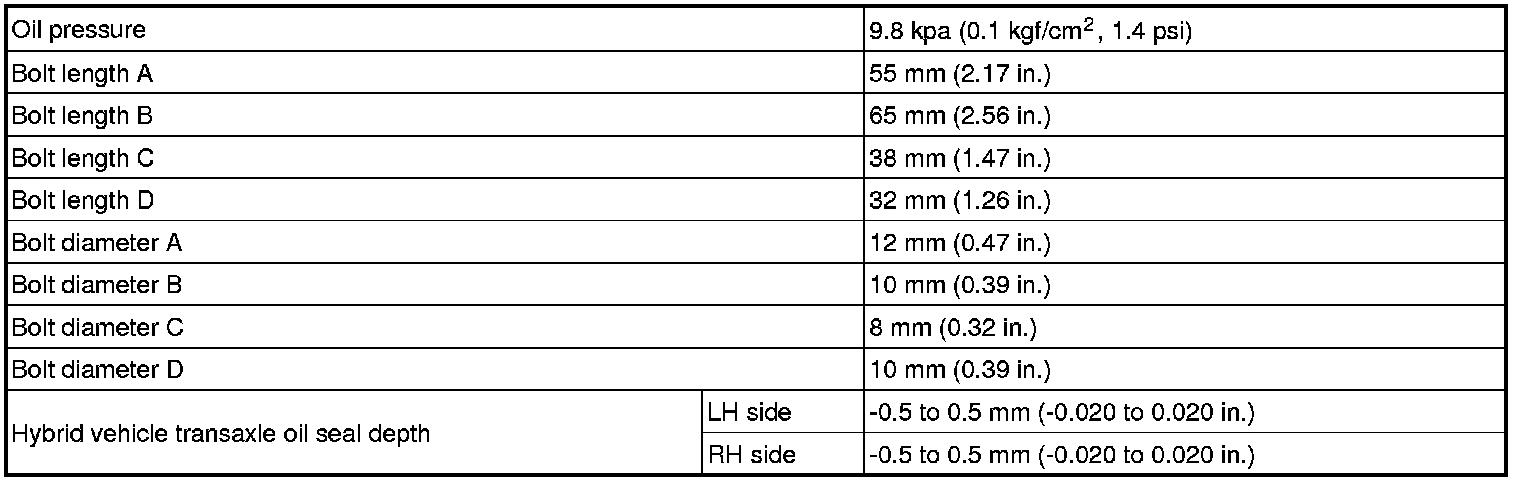 SERVICE SPECIFICATIONS: P311 HYBRID TRANSMISSION / TRANSAXLE: SERVICE DATA