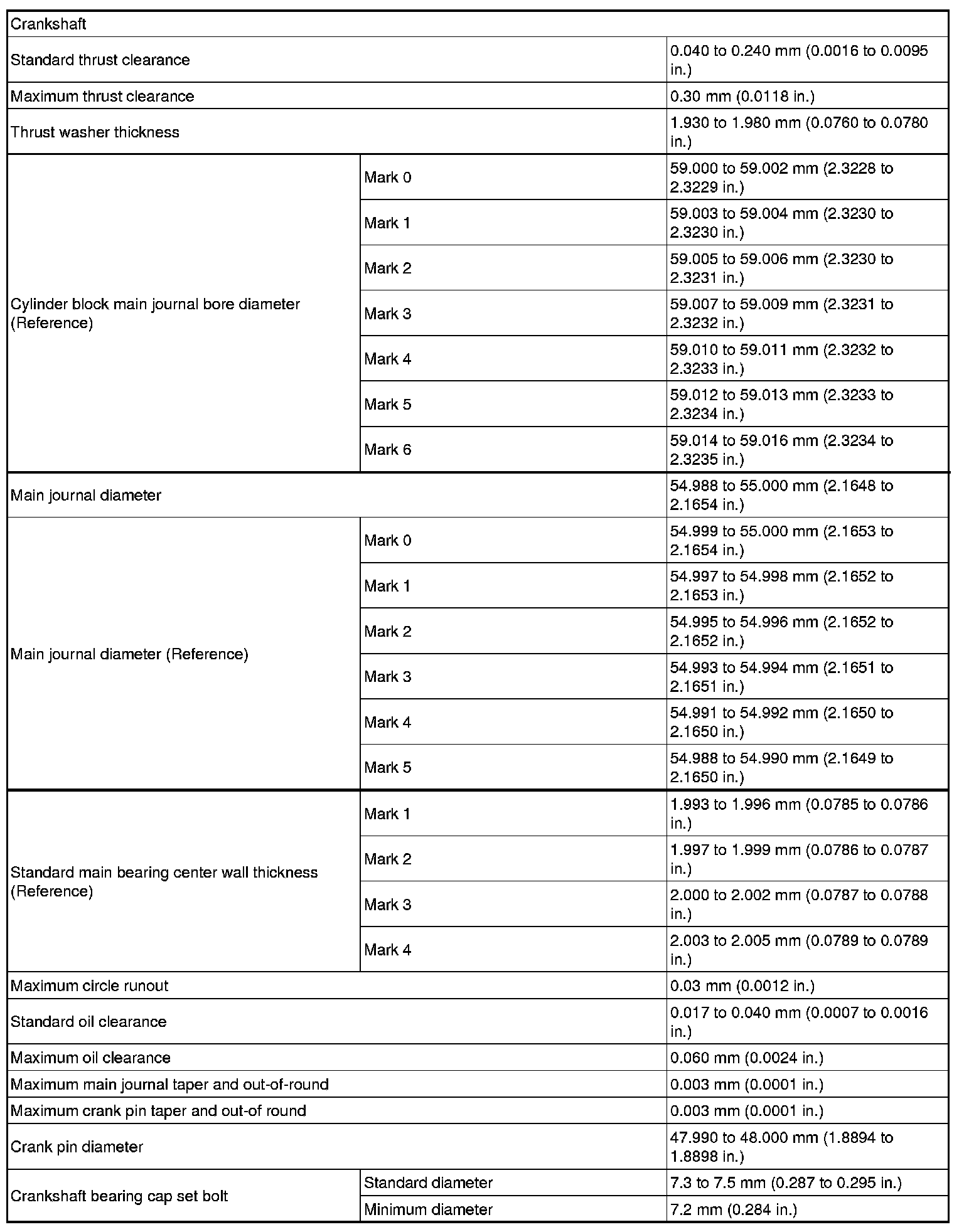 Crankshaft And Main Journal Specifications