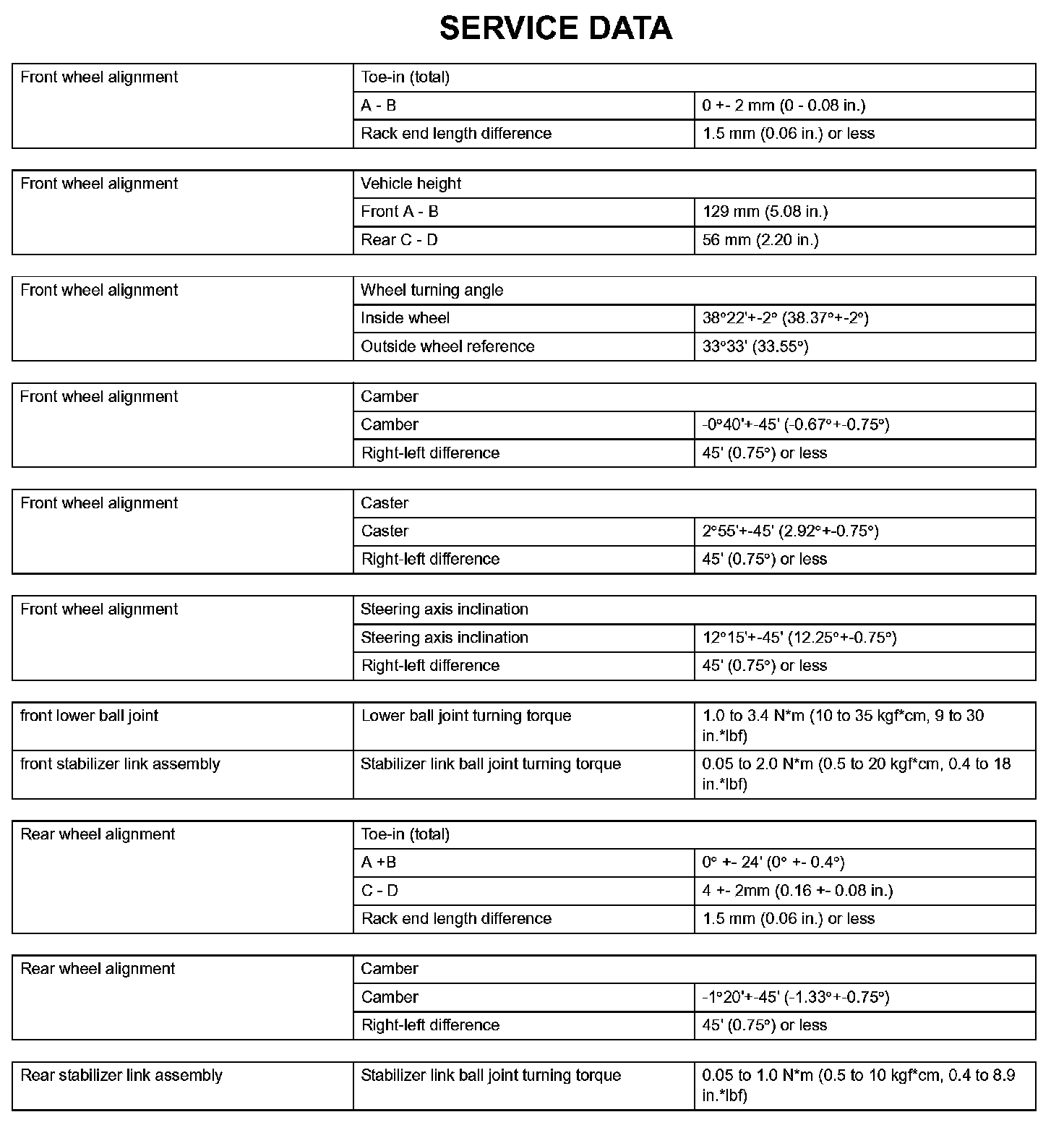 Suspension - Service Data: