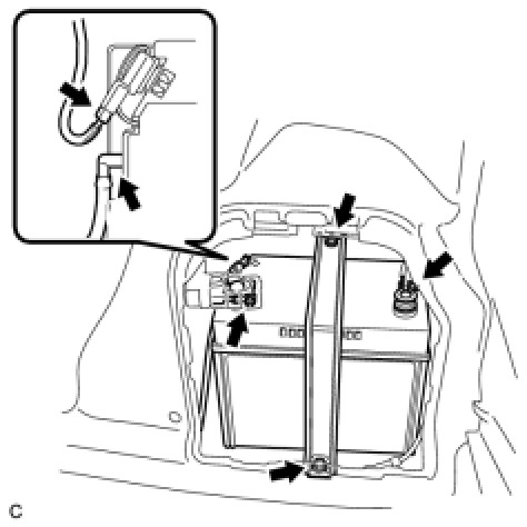 (b) Disconnect the cable from the positive (+) terminal of the auxiliary battery.