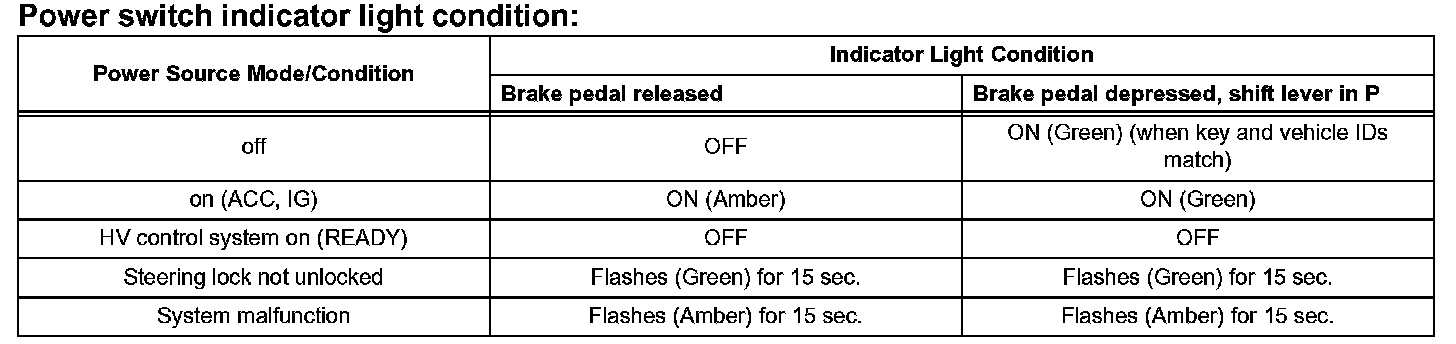 - When the main body ECU detects an abnormality in the push-button start function, it makes the amber indicator light flash. If the HV control system stopped in this state, it may not be possible to restart it.