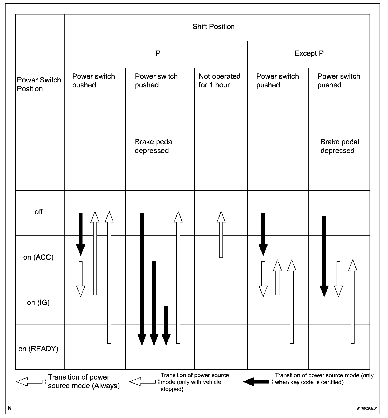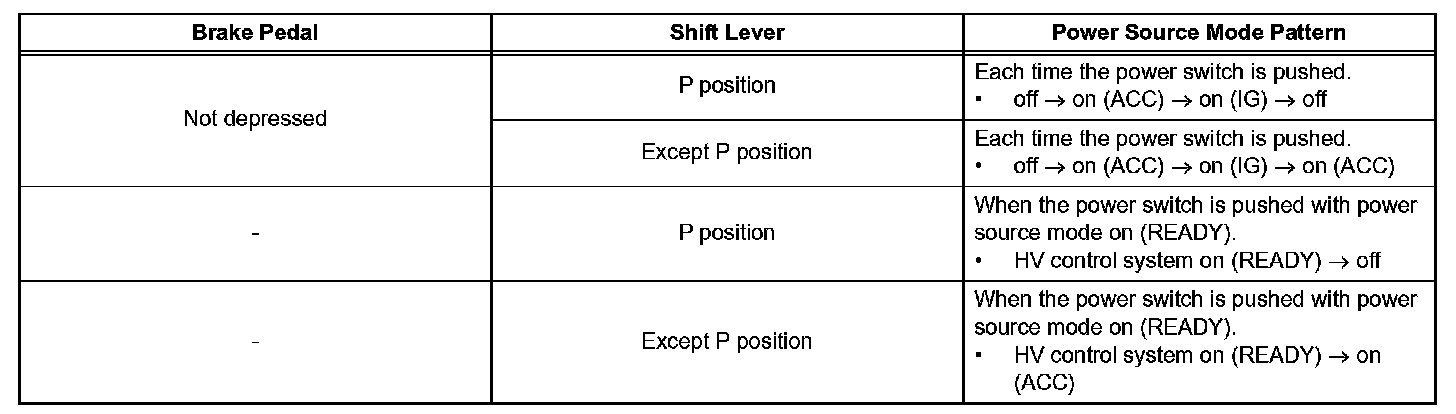a. This system has different power source mode patterns depending on the brake pedal condition and shift lever position.