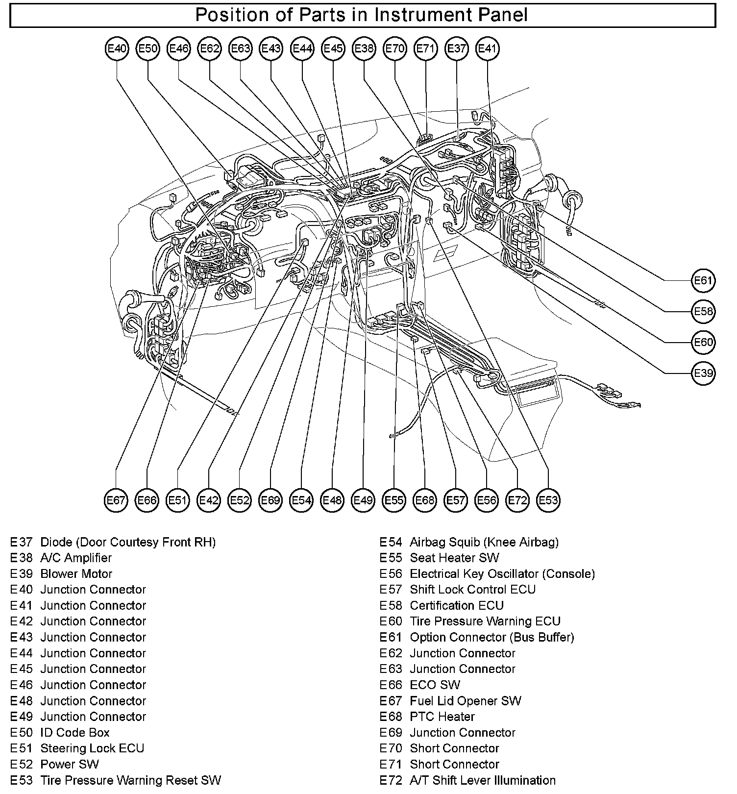 Position of Parts In Instrument Panel