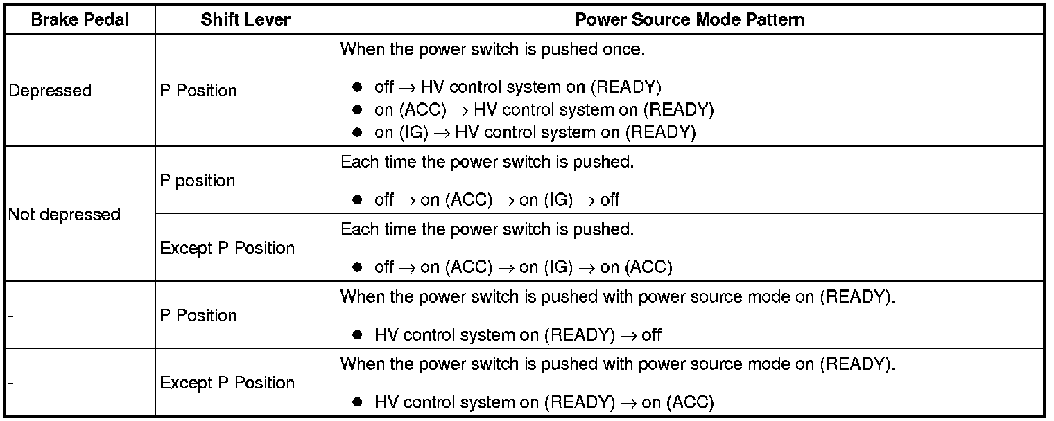 (1) Check that power source mode changes in accordance with the conditions of the shift position and brake pedal.
