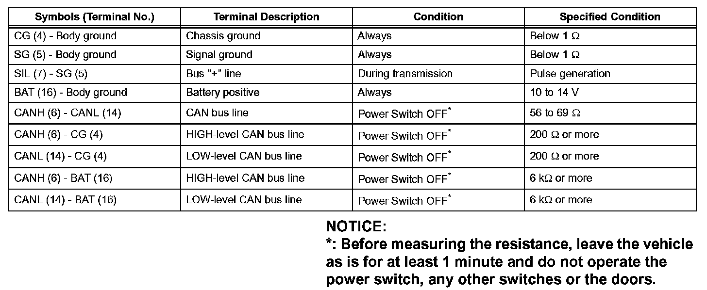 If the result is not as specified, the DLC3 may have a malfunction. Repair or replace the harness and connector.