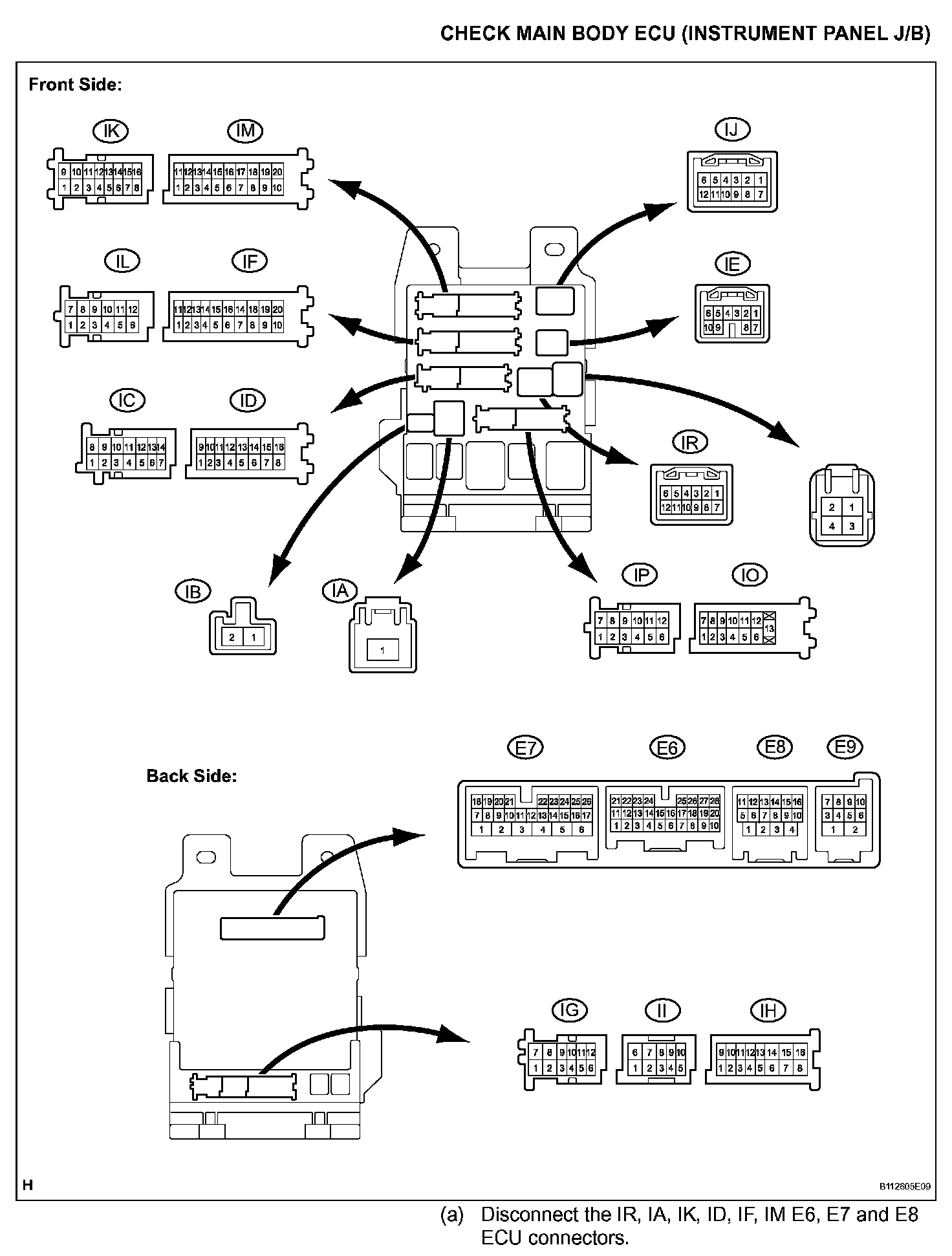 Terminals of Control Module/Pinouts - Check Main Body ECU (Instrument Panel J/B) (Part 1):