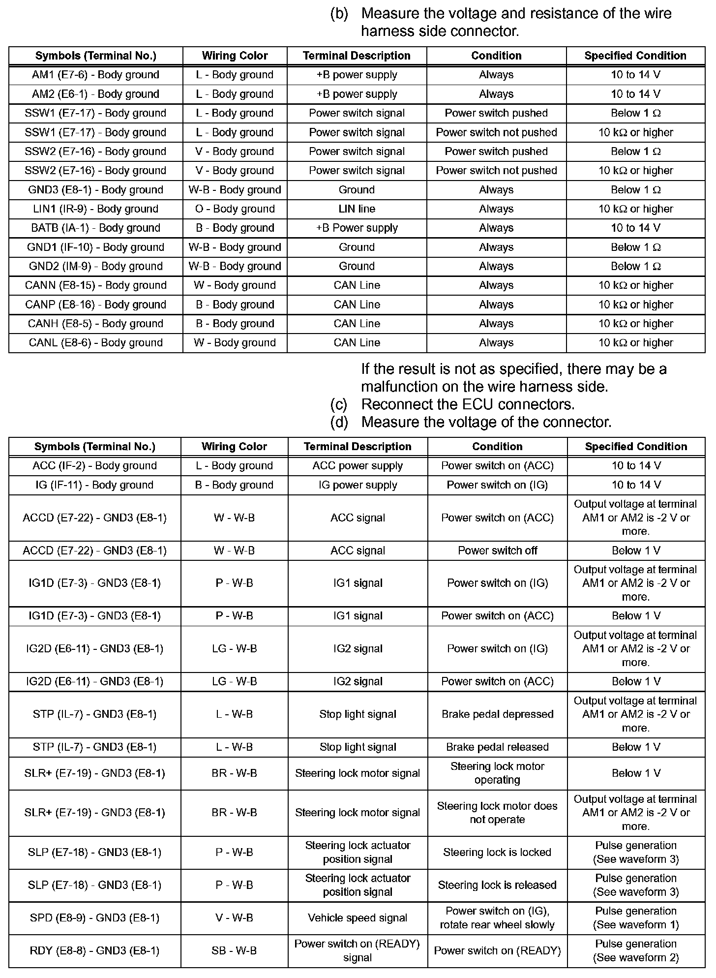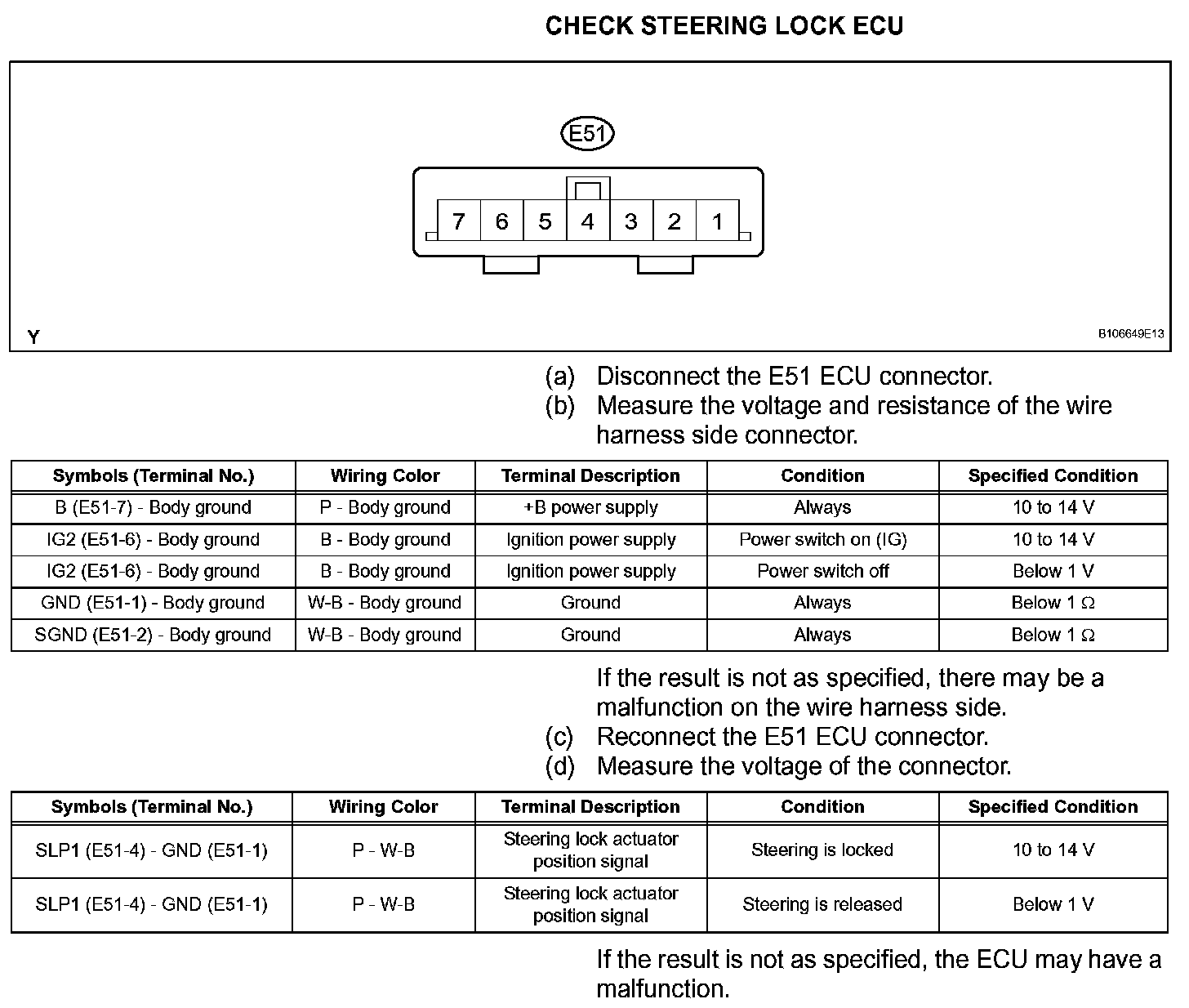 Terminals of Control Module/Pinouts - Check Steering Lock ECU:
