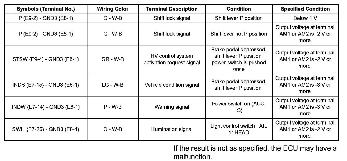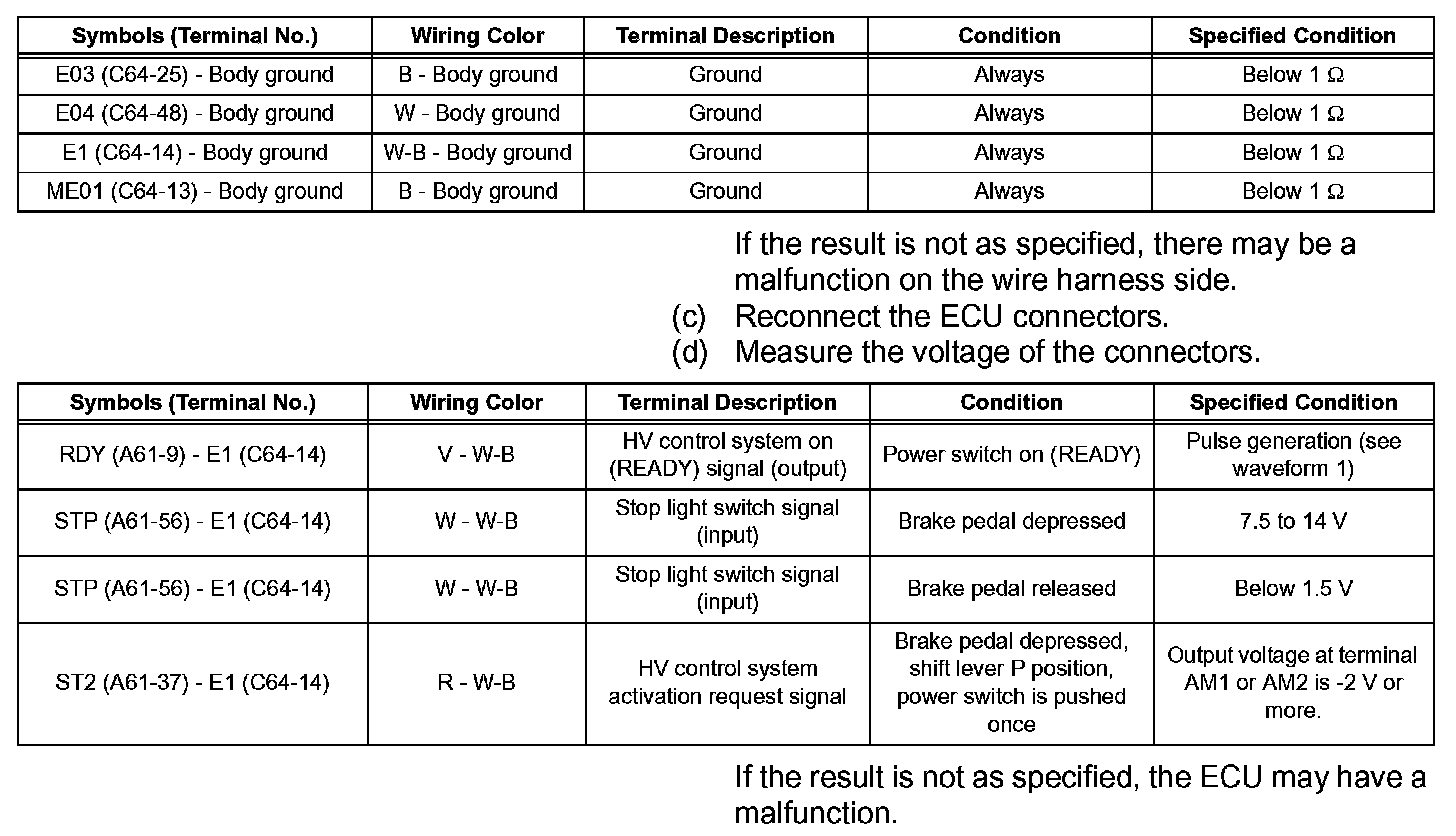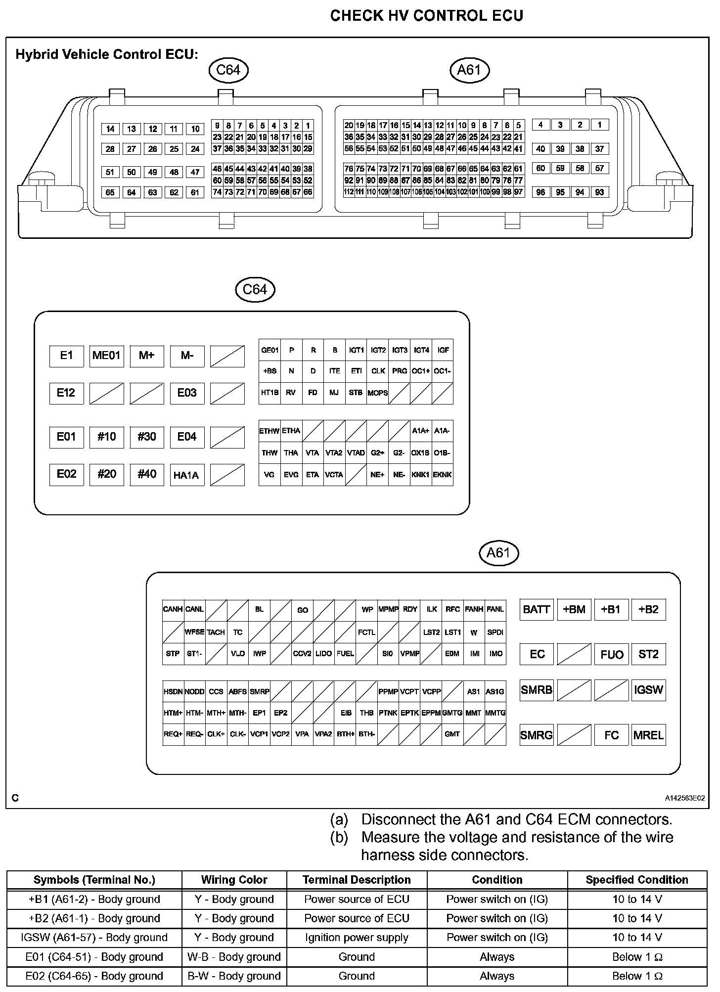 Terminals of Control Module/Pinouts - Check HV Control ECU (Part 1):