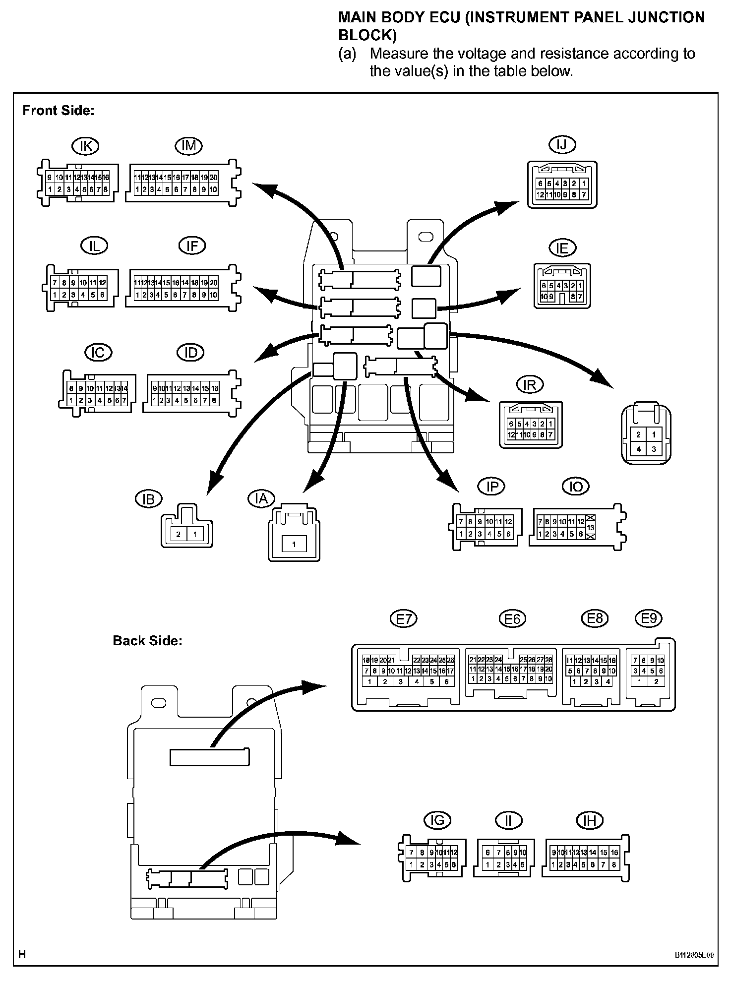 Terminals of Control Module/Pinouts - Check Main Body ECU (Instrument Panel J/B) (Part 2):