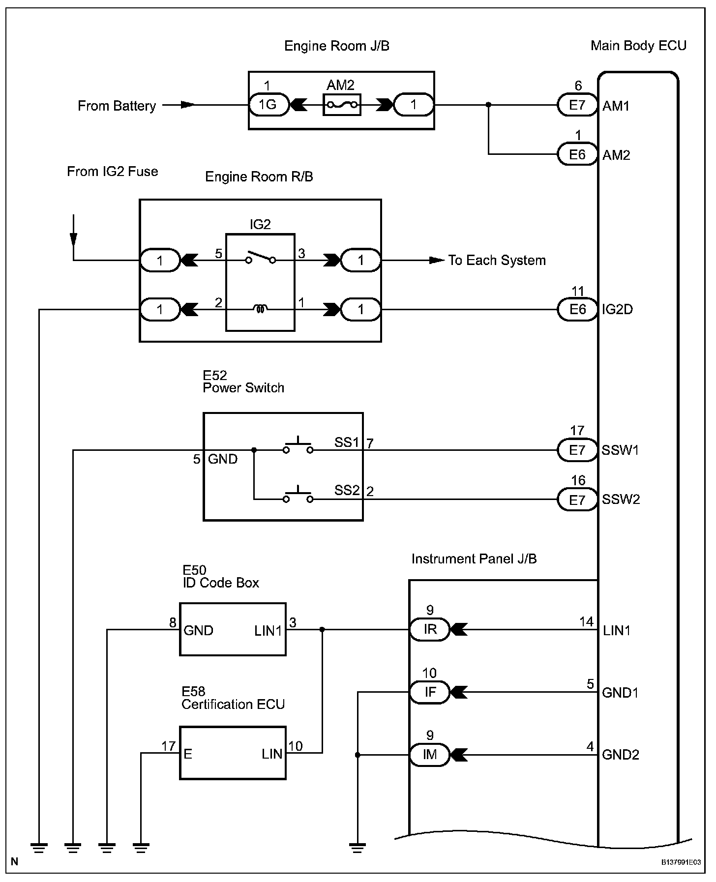 When the power switch is pushed with the electrical key in the cabin, the main body ECU receives signals to switch the power source mode.
