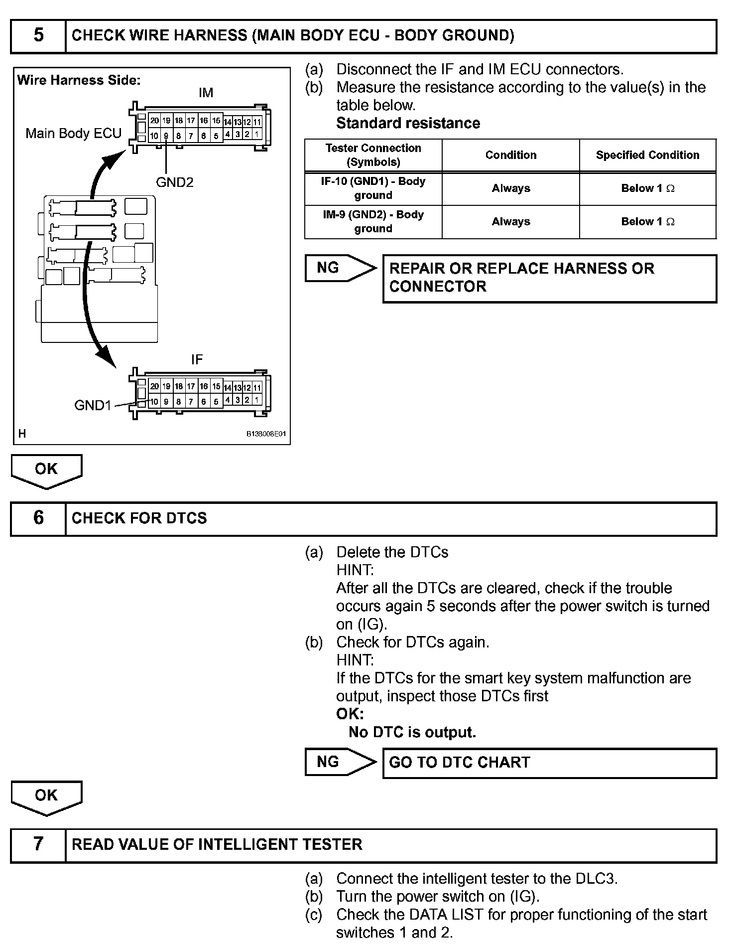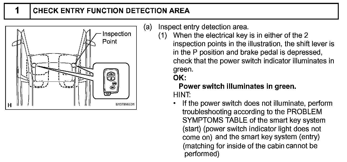 HINT: To allow use of the intelligent tester to inspect the push-button start function when the power switch is off, repeat opening and closing any of the doors. Opening and closing a door establishes communication between the intelligent tester and the main body ECU. (Opening and closing a door can also be simulated by operating a door courtesy light switch.)